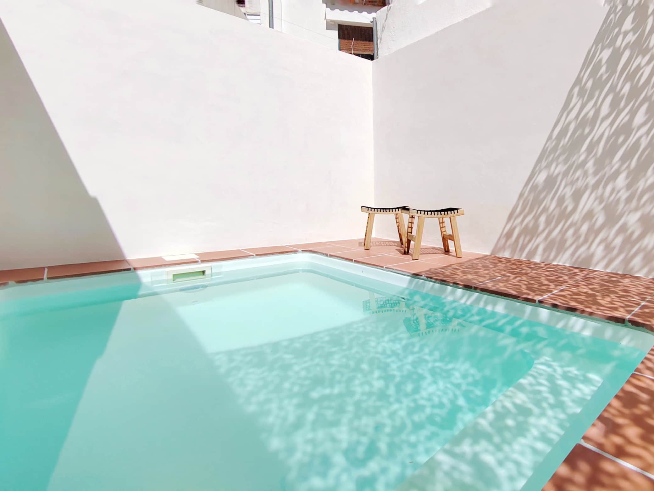 プライベートパティオには、プール、サンラウンジャー、屋外家具が備え付けられており、日当たりの良い朝食、爽快な水泳、星空の下での心地よいディナーに最適な場所です。